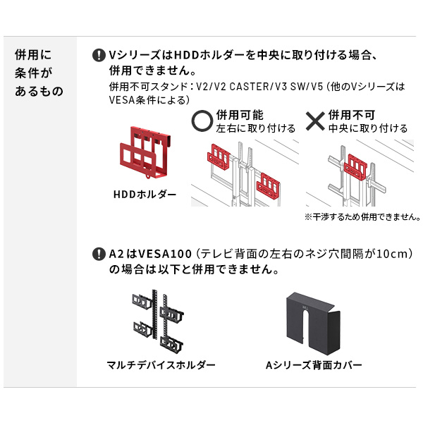 ※V2/V2 CASTER/V3 旧型の場合、VESA100のテレビ取付けと併用できず取り付けできません。